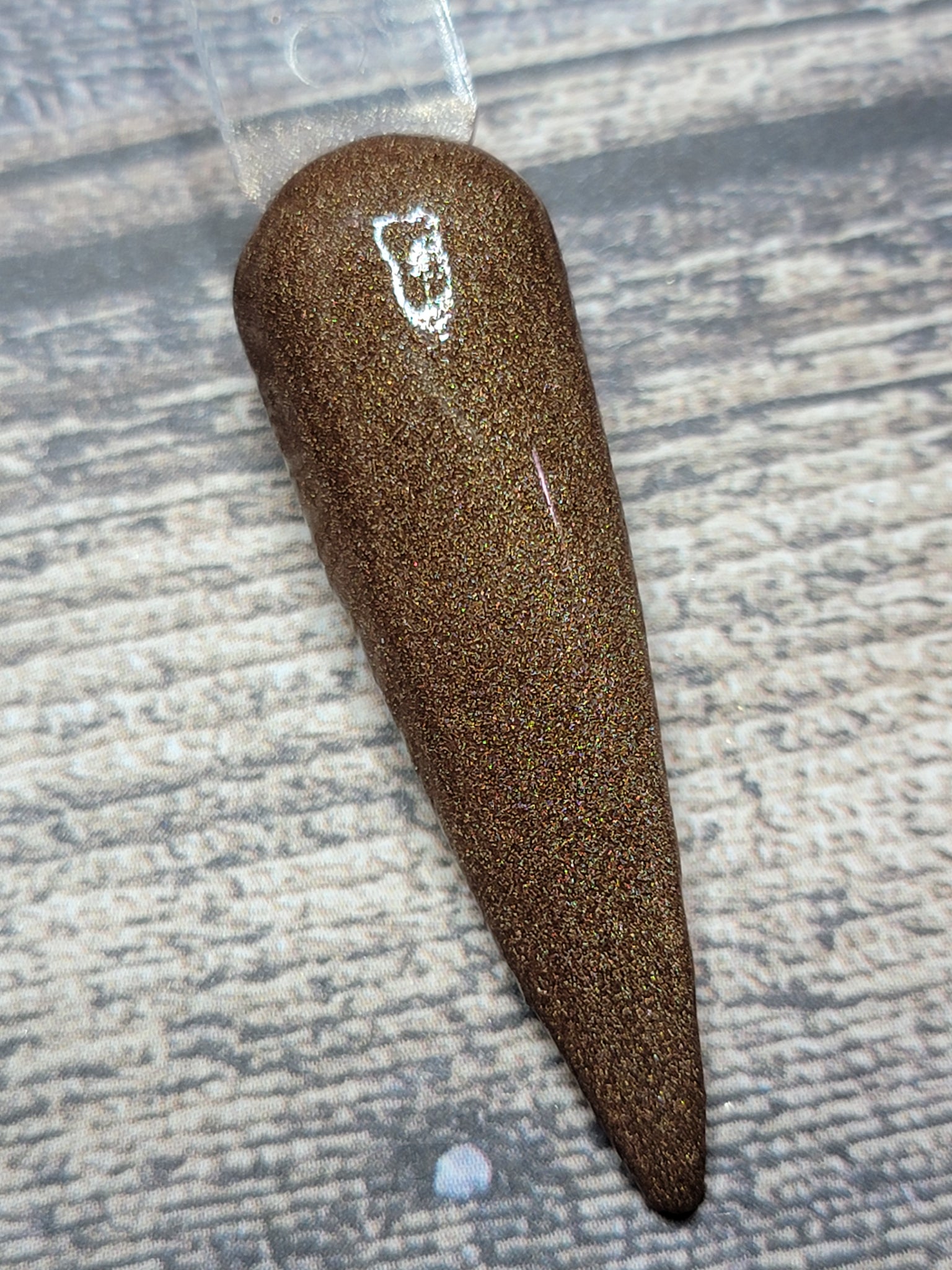 Fresh Ground is a shimmery chrome translucent base with fine, brown holographic, and color-shifting tinsel glitter.