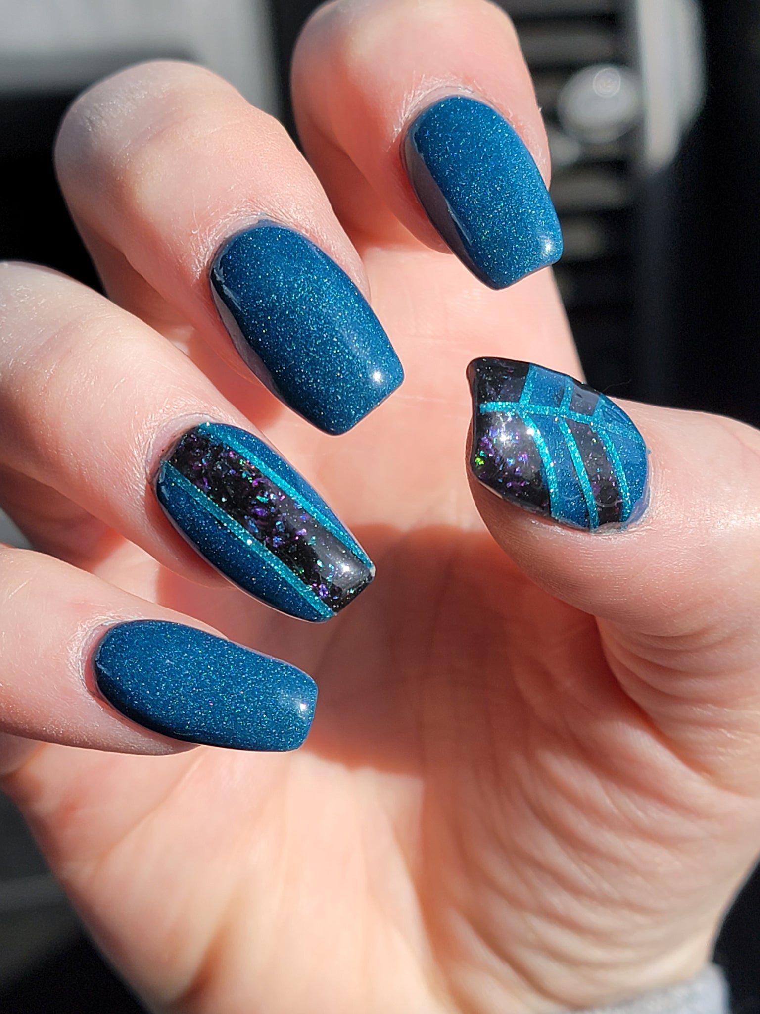 I'm Peacocking is a cobalt blue shimmer dip that is able to be chromed.