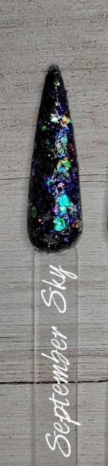 September Sky is a multicolored glitter mix with both medium and chunky sized glitter as well as star-shaped glitter.