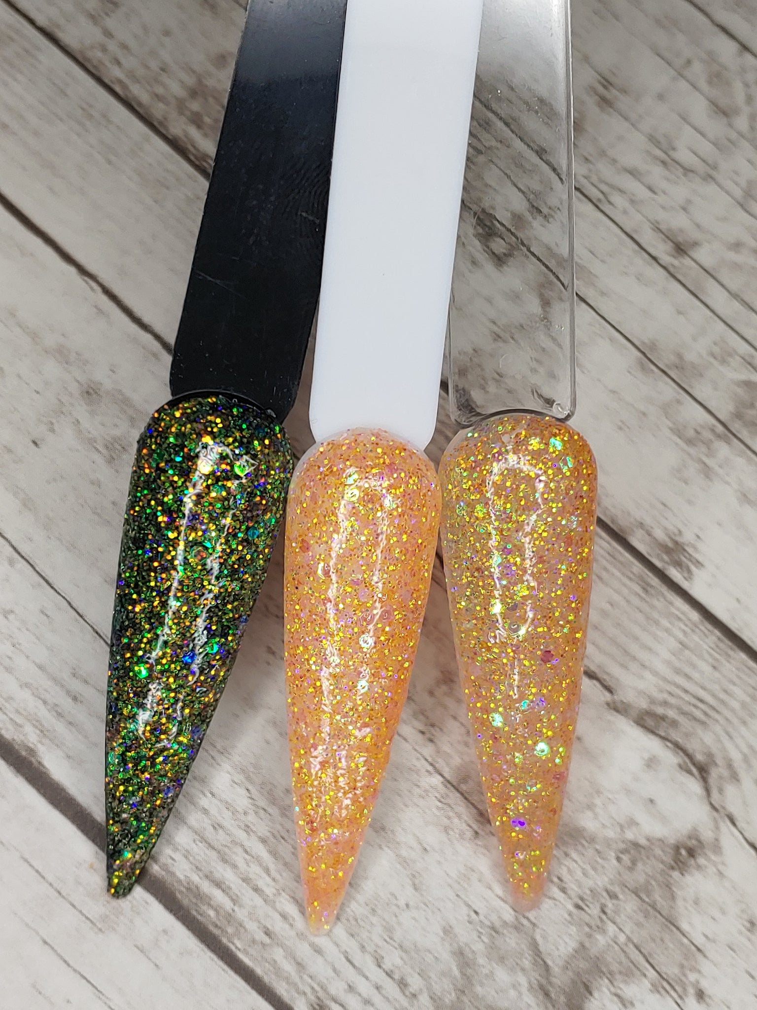 Spring Break-up is a clear dip base with  multicolored neon iridescent glitter.
