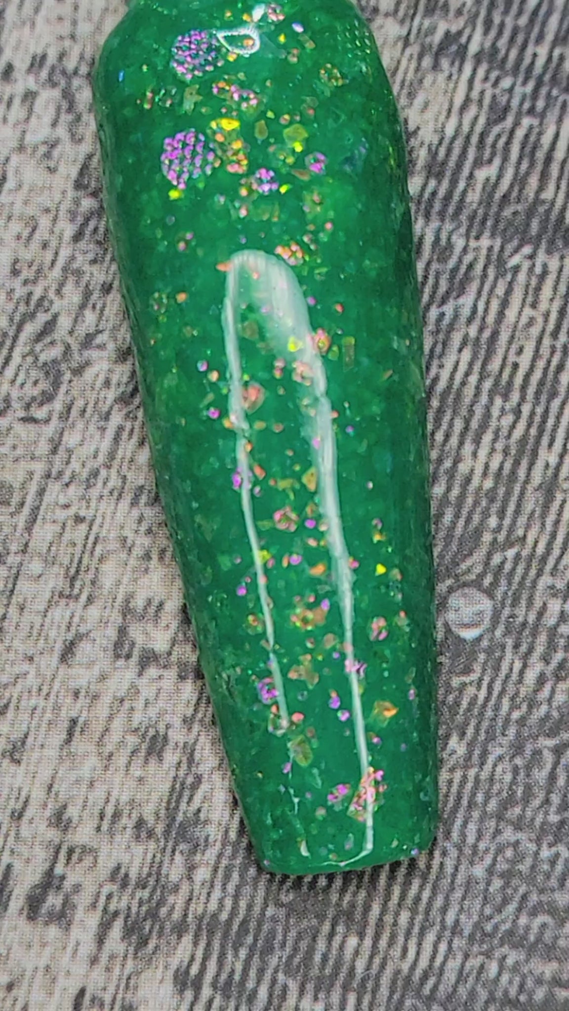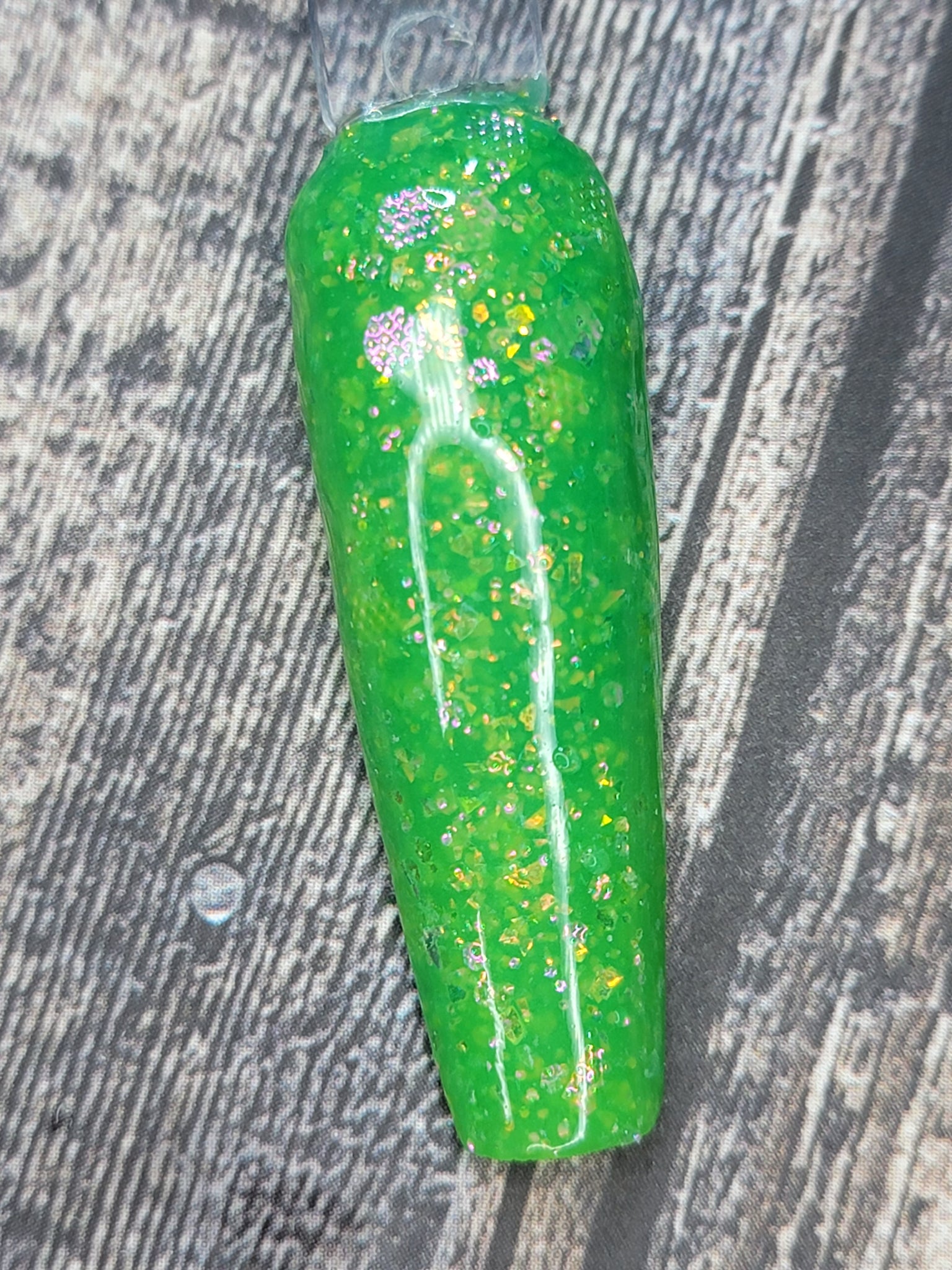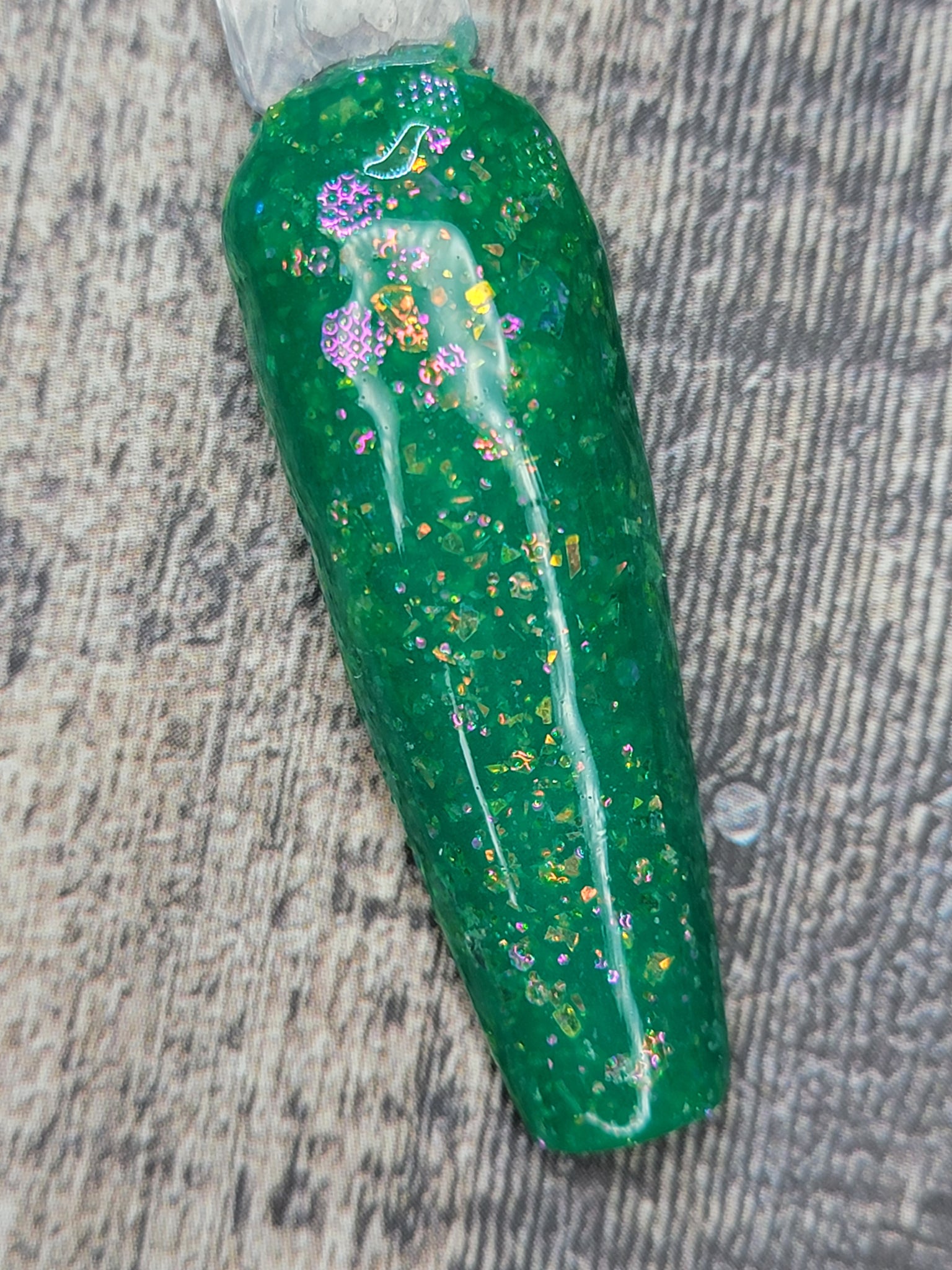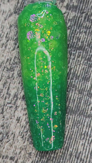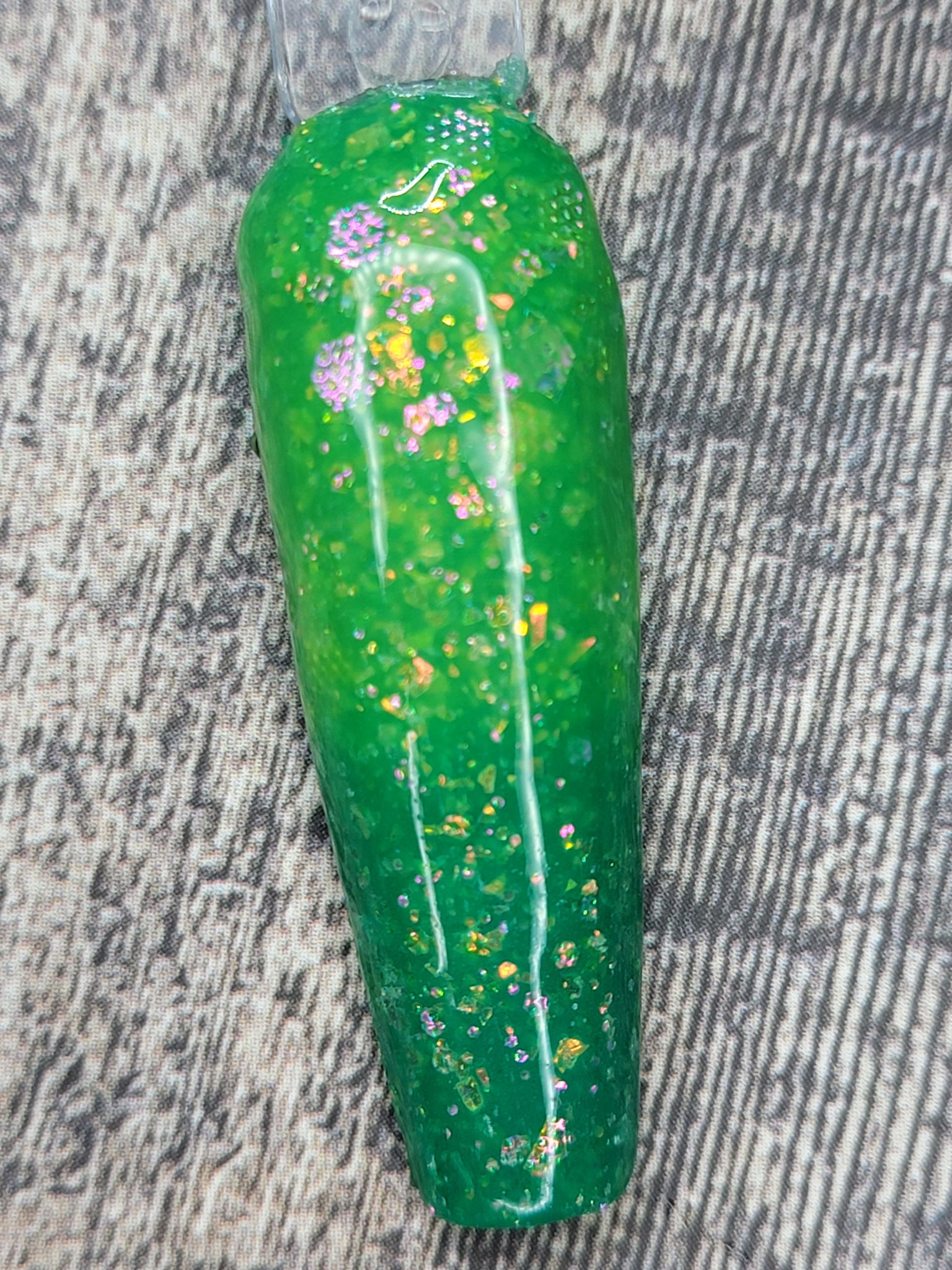 Oh, For Fish Sakes is a lime green to dark green thermal with iridescent color-shifting glitter, flakies, and honeycomb shaped glitter.